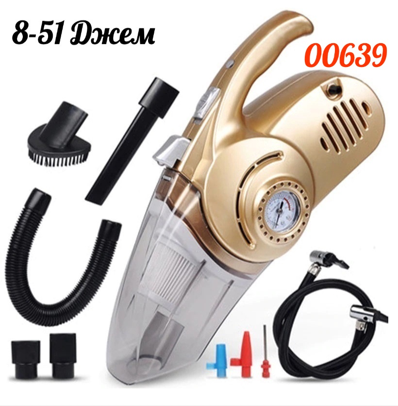 Приобретая автомобиль, каждый владелец машины сталкивается со сложностью поддержания чистоты в своём авто. Использовать тряпки, щетку невыгодно и бесполезно. Хлопот много, результат почти нулевой. Однако с помощью портативного пылесоса 4 в 1 CAR вы можете быть абсолютно уверенны в чистоте вашего автомобильного салона. Сбор мусора будет происходить легко и быстро, и для уборки не потребуется прилагать особых усилий. Теперь вы можете не только почистить салон от пыли и грязи, но и измерить им давление в шине с помощью счетчика давления. Если оно низкое, можно накачать колесо с помощью благодаря функции воздушного насоса. Всего за пять минут оно будет накачено, и вы сможете ехать дальше. Не нужно использовать громоздкий насос. Он быстро и легко очищает салон авто, моторный отсек и багажное отделение, радиус рабочей чистоты составляет 4.2 метра. Преимущества: Оснащен ярким и мощным фонариком, который заменит обычный. Имеет прозрачный пылесборник, а значит вы всегда будете видеть, когда его нужно почистить. Многоразовая фильтрующая сетка HEPA , которую можно стирать в воде, и снова использовать. Пылесос прекрасно улавливает пыль даже в самых труднодоступных местах в салоне автомобиля, где никакая щетка не справится. За счет мощной силы всасывания собирает мелкие монеты и вещи, жидкость, шерсть животных, обрывки бумаги, скорлупу, крошки хлеба. Его можно быстро почистить, и снова собрать. Работает от прикуривателя. Компактный, легкий, удобно лежит в руке, без труда размещается в багажнике машины. Благодаря своей простой и надежной конструкции, он сможет прослужить долгие годы. Характеристики: Мощность компрессора: 100 Вт Влажная уборка: Да Мощность: 120 Вт Длина кабеля: 4,2 м Питание: 12 В