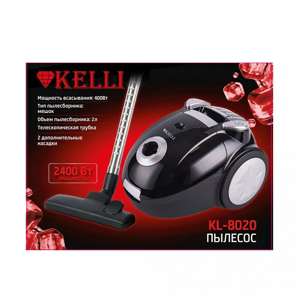 Пылесос "Kelli", пылесборник: мешок 2л, 2 дополнительные насадки, 5-ти ступенчатая система фильтрации, металлическая телескопическая трубка, индикатор заполнения пылесборника, вертикальная парковка, ножной переключатель вкл/выкл, сетевой шнур: 4м, ат