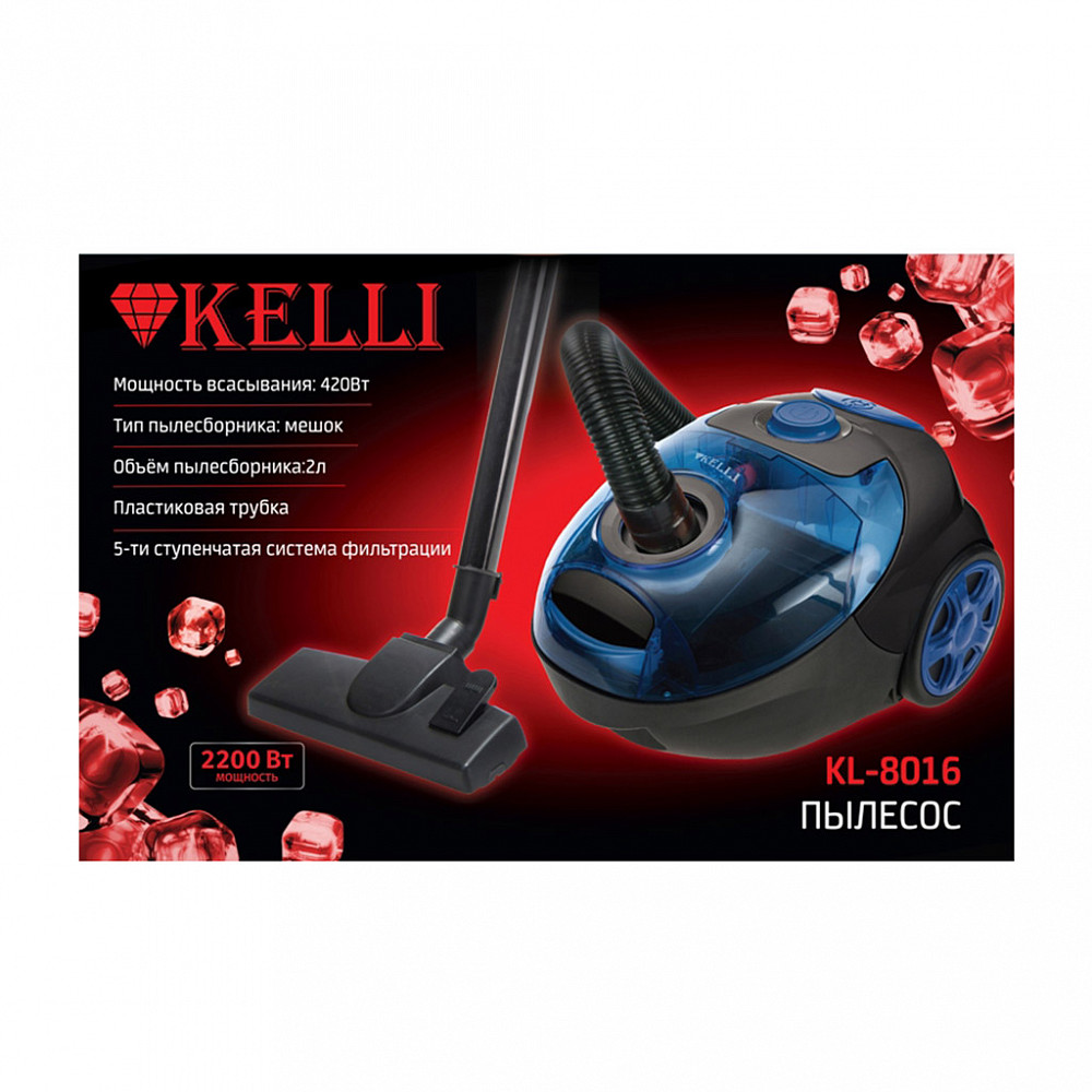 Пылесос "Kelli", пылесборник: мешок 2л, 5-ти ступенчатая система фильтрации, удобный механизм очистки, пластиковая трубка, сетевой шнур: 4м, атоматическое сматывание, колеса для легкого перемещения, низкий уровень шума, потребляемая мощность: 2200 Вт
